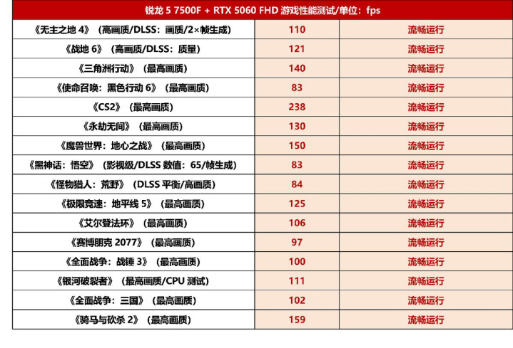 实战测试:锐龙5 7500F + RTX 5060通吃FHD游戏大作
